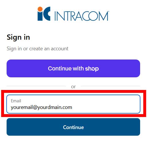 Provide your email address (or use continue with shop if you have a Shop account)