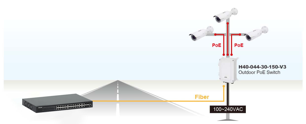 H40-044-30-150-V3 Industrial Outdoor Gigabit PoE Switch – Built for Security Surveillance Installations